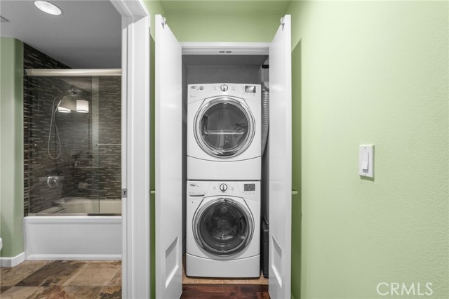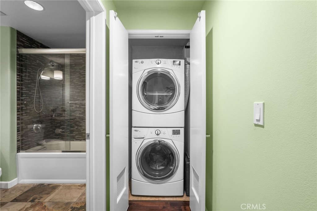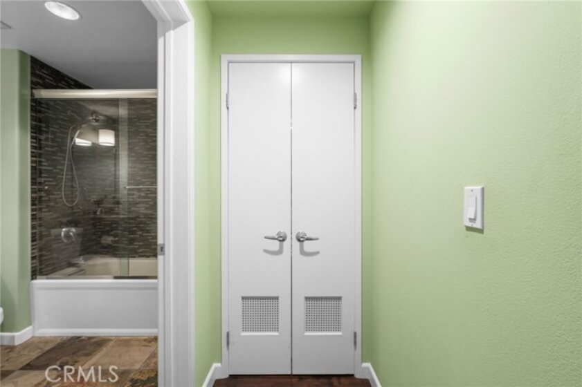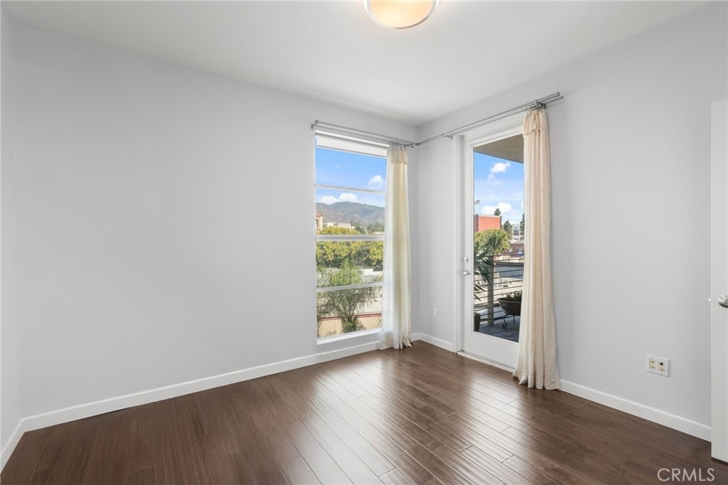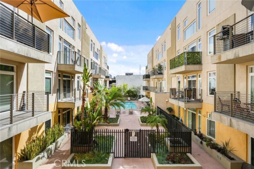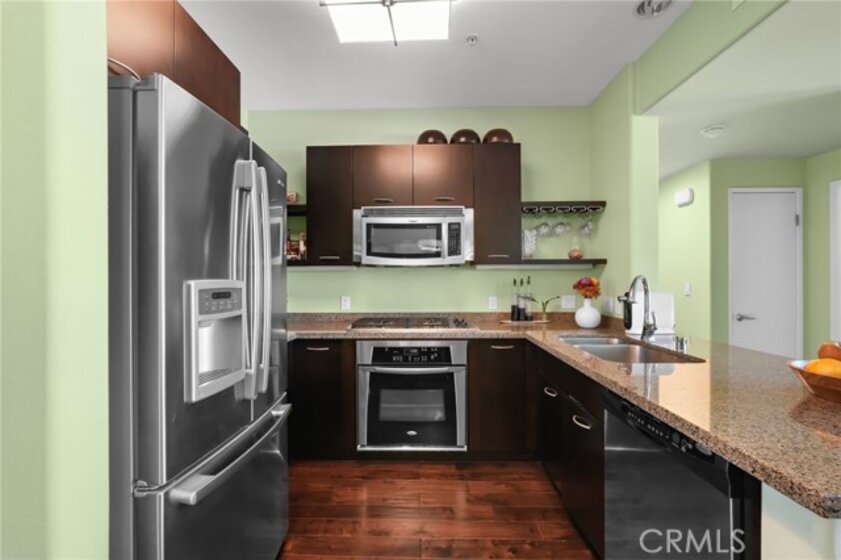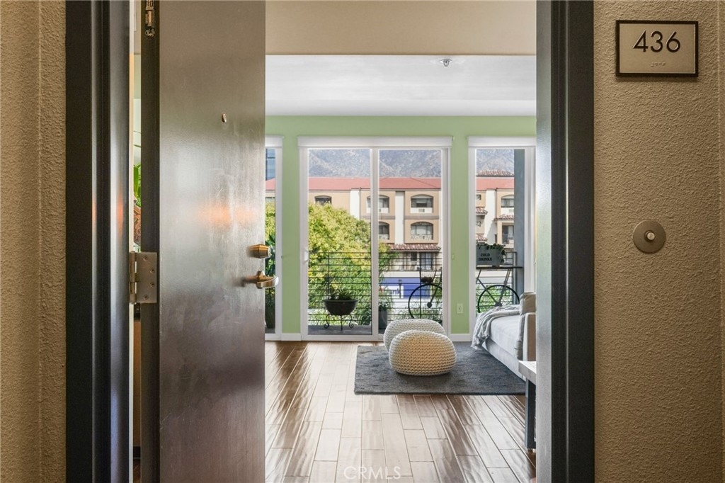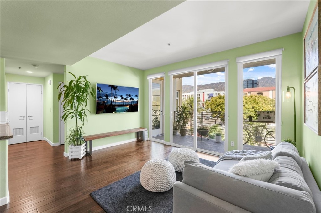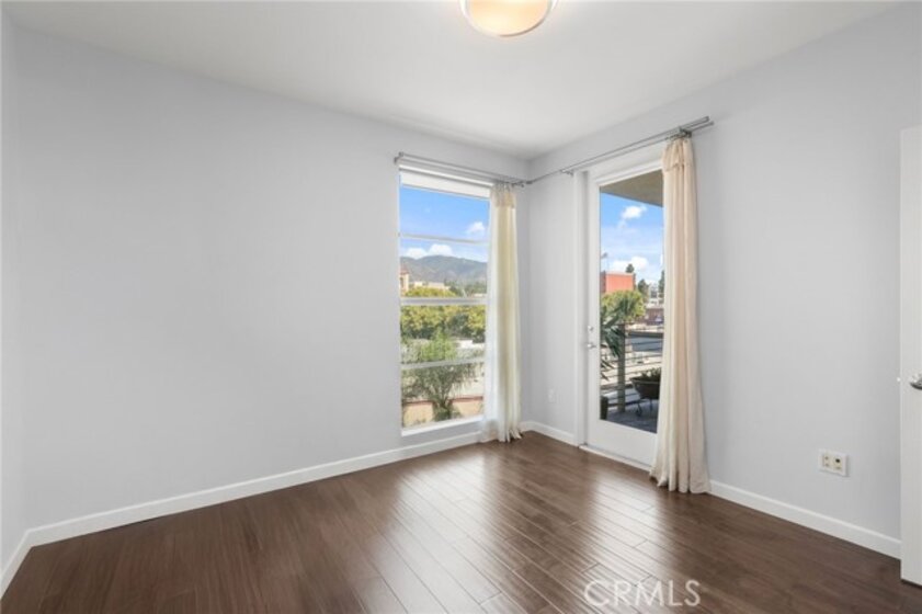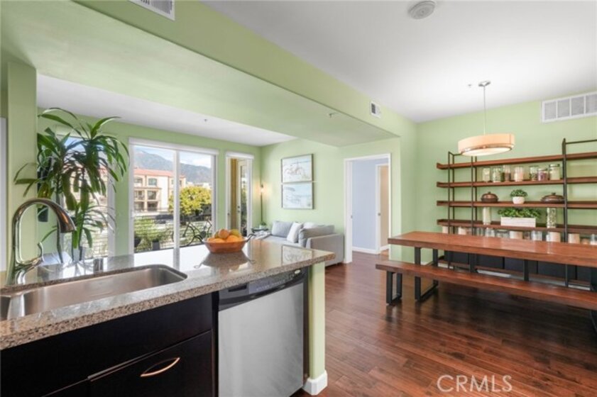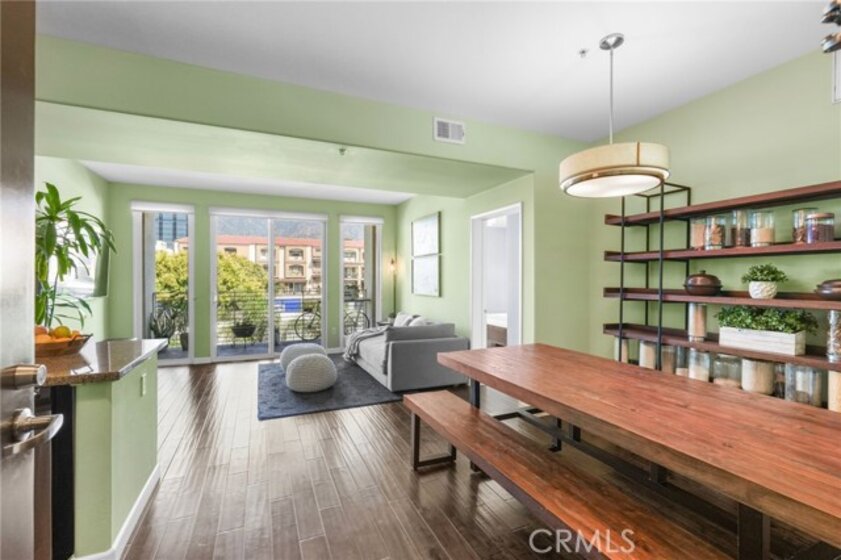 Step into effortless living with this stunning move-in-ready condo, ideally located in the sought-after Burbank Collection building—right in the vibrant heart of downtown Burbank. From the moment you enter, you'll be welcomed by an inviting, open-concept layout filled with natural light. Elegant, newer hardwood floors with cork underlayment ensure both style and soundproof comfort throughout the main living areas. Whether you're hosting guests or enjoying a peaceful evening, the seamless flow from the sunlit living room to the chandelier-lit dining area makes everyday living and entertaining a breeze. The modern kitchen is a true standout, featuring granite countertops, quality appliances, and rich cabinetry—perfect for preparing meals with ease and style. Retreat to either of the two serene bedrooms, both served by recently updated bathrooms. The guest bath includes a chic tile shower/tub combo, while the luxurious primary ensuite offers a frameless walk-in shower and a deep soaking tub. Step out onto your private balcony to take in rare and picturesque views of the beautiful Burbank hills—an ideal space to relax and recharge. Additional features include a newer A/C system, a water-softening system, and two side-by-side parking spaces with extra storage. As part of the Burbank Collection, you’ll enjoy exclusive access to resort-style amenities including a swimming pool, fitness center, putting green, community lounge, and lush landscaped courtyards. All of this is just steps away from premier shopping, dining, and entertainment—including the AMC theater. It’s a space that balances comfort, convenience, and location—exactly where you want to be.