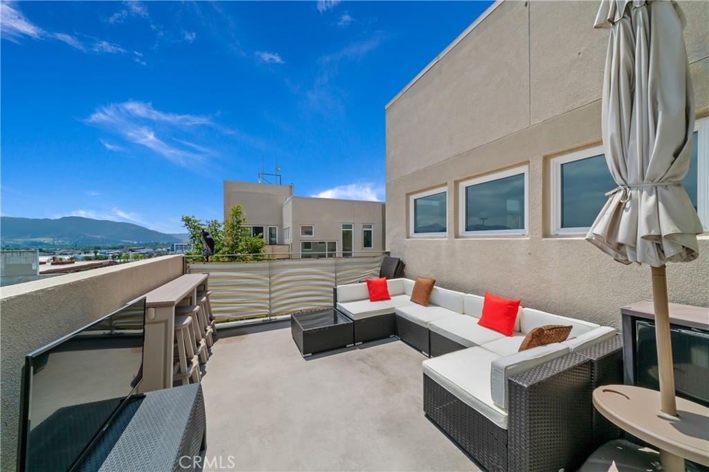 LOCATION! LOCATION! Your luxurious PENTHOUSE is ready and located in the heart of downtown Burbank. You will love this new lifestyle being on the top floor of this modern 2 level condo/penthouse and seconds away from entertainment with enjoyment of private peace and quiet that collides with so much opportunity. Enter into this magnificent resort that boasts soaring high ceilings, plenty of windows allowing for a ton of natural light. This 3 bedroom 3 bathroom is an exceptionally private residence in immaculate condition. The gourmet kitchen is sure to bring out the chef in you with granite counters, stainless steel appliances, plenty of counter space, and large center island that is open to formal dining/living room. There are sliding door that allow access to one of the balconies. There is main floor bedroom with a full bath and upstairs are two good sized bedrooms, with another 2 full bathrooms with granite countertops. One of the bedrooms gives access to another oversized balcony with impeccable views. Top notch amenities include a sparkling outdoor pool, clubhouse with billiard table, bocce ball court, putting green, BBQ, fire pit, and gym. Right across from AMC Plaza with outdoor concerts, art, and food festivals, movie theaters, restaurants, shopping, and so much more. If you need extra storage you will love the 2 car garage, and extra storage space in your additional parking area. Make your appointment today! This rare find will not last long!!!