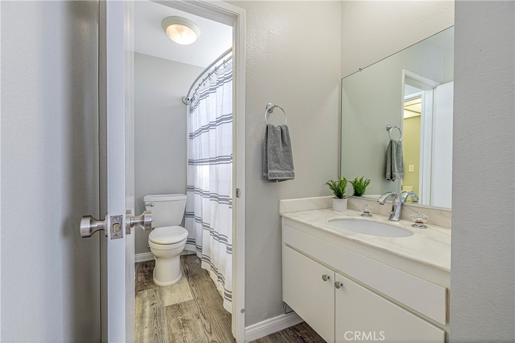 This townhome is a must see! Nestled in the hills and tree lined streets of Burbank, this property is located near shops, restaurants and lots of other amenities to enjoy with friends and family. Split level entry with 1/2 bath and coat closet. Down stairs leads to laundry, storage and access to private 2 car garage. Up stairs leads to a spacious living room with partially enclosed balcony, dining area and kitchen. Kitchen has been refreshed with newly painted cabinets, featuring new knobs, pulls and hinges. New quartz countertops and backsplash really make this kitchen a chef's delight. The open tread staircase to the third level allow for great light and transparency with a nod to cool mid-century living. Upstairs you'll appreciate two spacious bedrooms and a shared full bath. Each bedroom has private access to sink areas and share the toilet and bath/shower. The primary bedroom also has it's own private balcony. This property won't last long, schedule your appointment today!