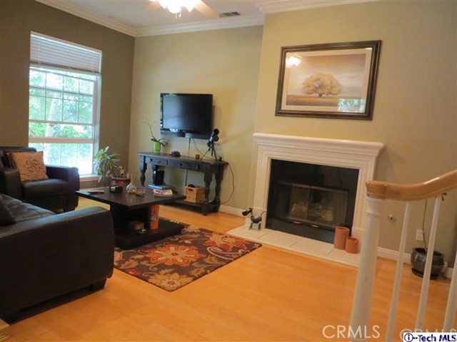 Gorgeous corner unit townhouse in highly desirable location. Charming Brownstone style building built in 2003. Extremely spacious 4 bedroom unit with private attached garage. Interior features include a living room with fireplace, dining area, kitchen with granite countertops, center island & breakfast nook, convenient interior laundry, balcony off master bedroom. Unit also features skylight, recessed lighting, ceiling fans. Low association fee. Great unit in great location!