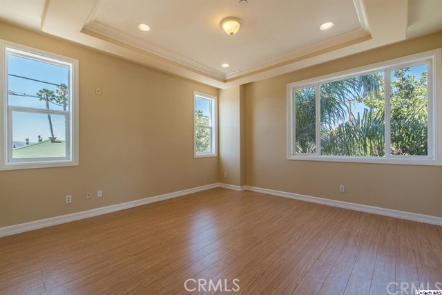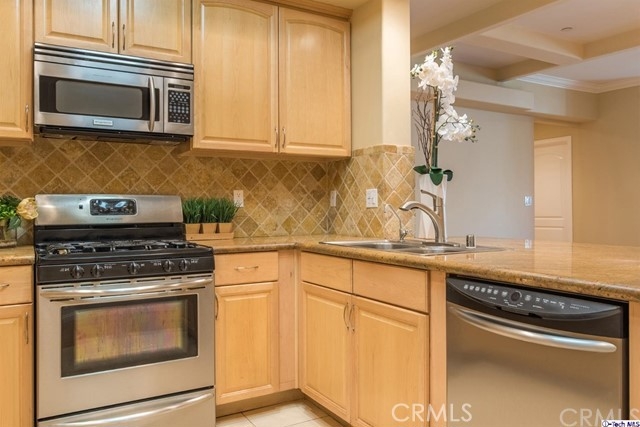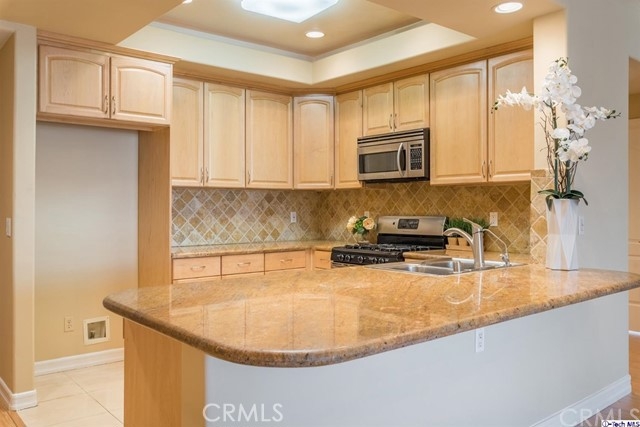 Gorgeous unit in a very modern, centrally located complex. Everything has been updated in it with gleaming laminate flooring throughout, new bathroom and kitchen accents and fresh paint. Amazing open floor plan extending from kitchen through living area and out to the balcony for fun gatherings. The living area boasts a large space and charming fire place. Great layout of the bedrooms and large master on one side with lovely views of Burbank. It also has a two car garage in the underground parking that is completely enclosed. Located in a desirable area of Burbank above Glenoaks.