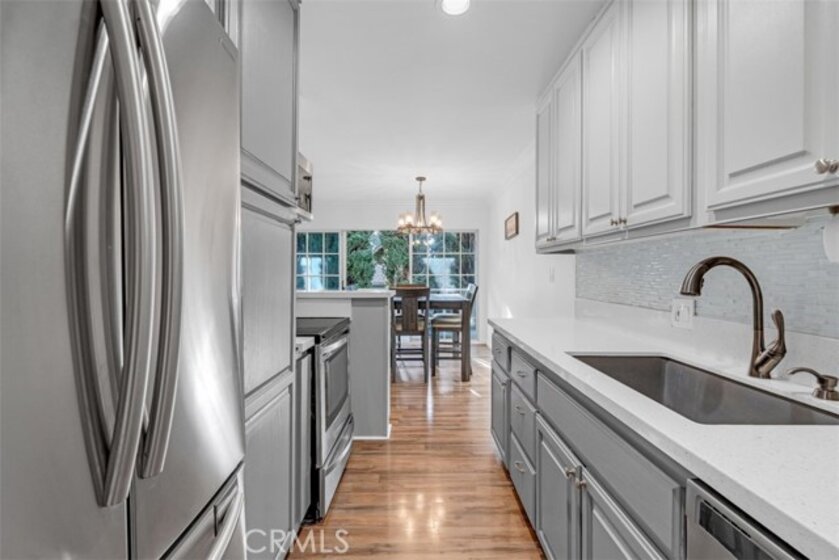 Ideally located just four blocks from Lakeside Country Club, this desirable corner unit offers an open-concept floor plan with a kitchen that flows seamlessly into the dining and living areas, leading to a private patio. The home features an in-unit washer and dryer, two spacious bedrooms, and two full bathrooms. Recent updates include recessed lighting, white quartz countertops, elegant crown molding, and a beautifully renovated primary bathroom. Both bedrooms also boasts a walk-in closet. Community amenities include a pool and recreation room. The HOA has recently completed major upgrades, including a new roof, HVAC and boiler systems, and a newly resurfaced pool deck. Conveniently located near Warner Bros., NBC, and Disney, and within walking distance to the popular Smoke House Restaurant.