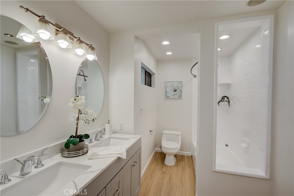 Situated in the heart of Burbank, walking distance to Downtown Burbank and the Town Centre with restaurants, cinema & shopping! This 2 bed 2 bath condominium has everything you're looking for including in-unit laundry. This spacious, open floor plan features large living room with fireplace. This unit is fully remodeled with new laminate flooring and paint. Master bedroom with own bathroom. The second bedroom can also be an office or study. Secure, gated parking for two cars.