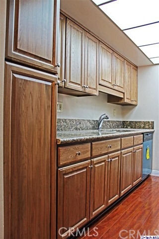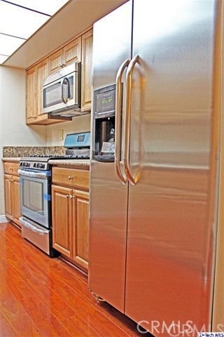 A Wonderfully charming and spacious 2 bedroom, 2.5 bath townhome located in a quiet 8-unit complex, a short distance from the popular Burbank Village, restaurants, shopping and theaters. The entire kitchen has been updated with brand new cabinets, granite countertops,& New Stainless Steel appliances. Gleaming parquet floors in the spacious living room ,dining room, and kitchen provide a clean and polished look. The stairs and second floor have brand new carpets. The home is complete with a convenient laundry closet on the second floor. The master bedroom features its own bathroom and lots of closet space. Secure gated garage for parking with 2 assigned parking spaces. LOW HOA DUES!
