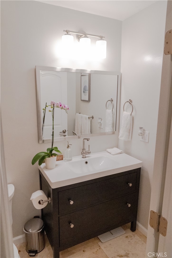 Spacious turnkey 2-bedroom 2-bath condo featuring elegant and thoughtful design. Recessed LED lighting and custom shutters throughout provide plenty of light and privacy. Updated kitchen features hardwood floors, granite countertops, tile backsplash, stainless steel-appliances and plenty of cabinetry for storage. Top floor unit also features a private balcony with partial mountain views off the dining area. Bathrooms feature travertine stone throughout with updated vanities. Master bedroom features walk-in closet with built-in cabinetry for convenient storage and organization, custom shutters, attached bathroom and LED recessed lighting. Oversized guest room features custom shutters and built-in storage organizer in the closet. Community Association amenities include reserved ground-level gated parking for 2 vehicles, barbeque area, swimming pool, laundry room, elevator access, intercom visitor access and more.