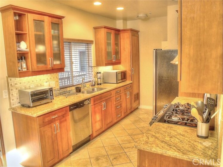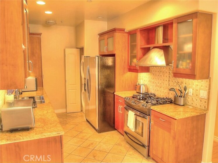 Gorgeous 2 bedroom, 2.5 bathroom condo located above Glenoaks Blvd. near Downtown Burbank. Built in 2005. 2 master bedrooms with full bathrooms. Beautiful granite kitchen, large dining area, living room with private balcony. Dual paned windows. Crown molding, recessed lighting. Central air and heat. Laundry in unit. Amazing rooftop bbq area with stunning mountain views. Beautifully landscaped grounds with tranquil fountains, greenery and palm trees. Elevator from parking garage to top floor. Wheelchair lift at sidewalk entrance. 2 subterranean parking spaces, not tandem. End unit, 1 common wall.