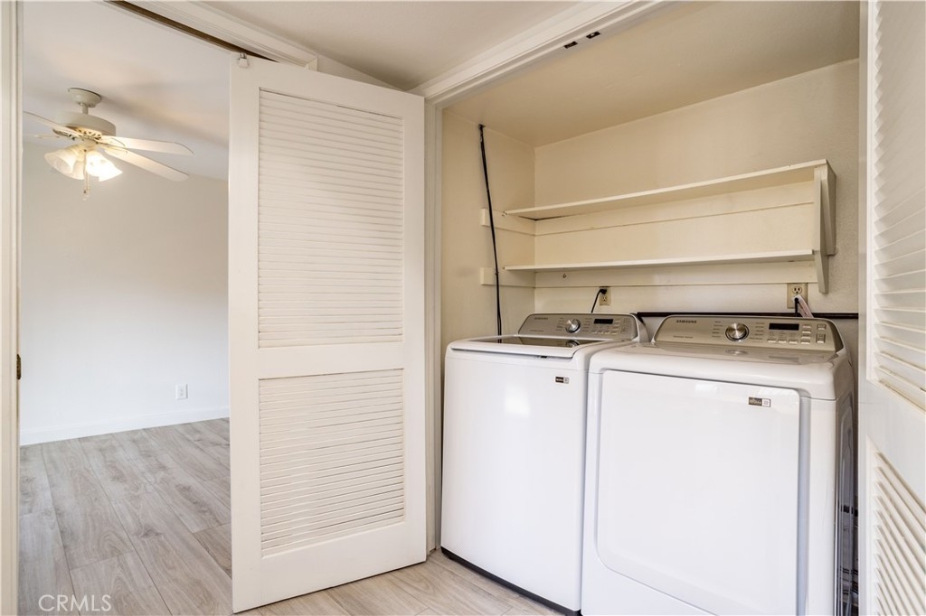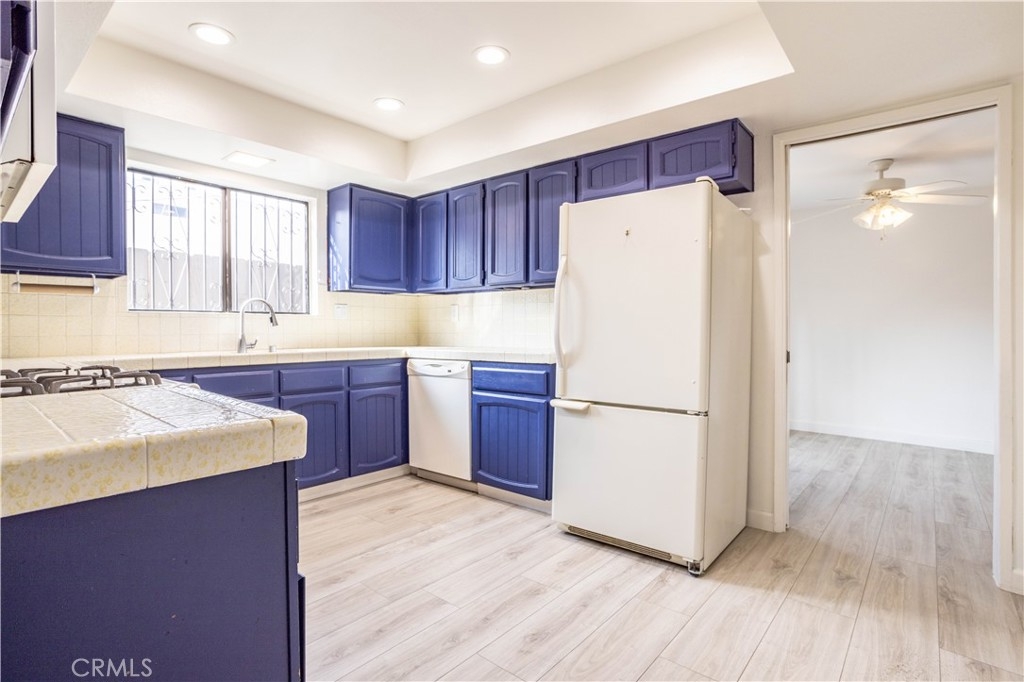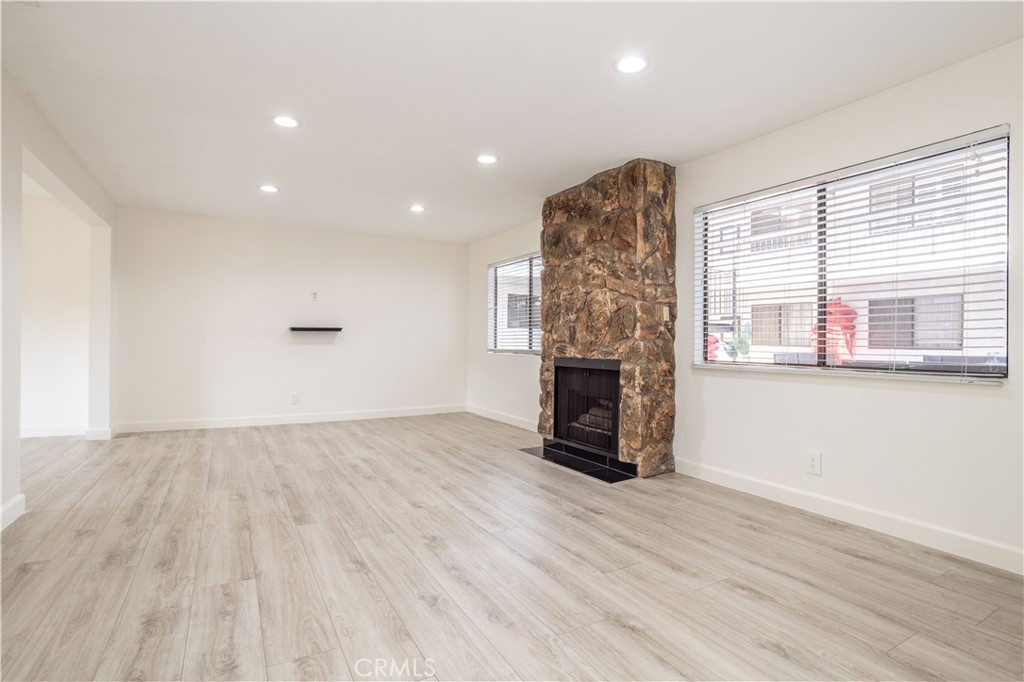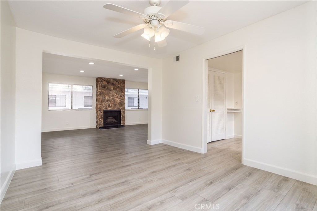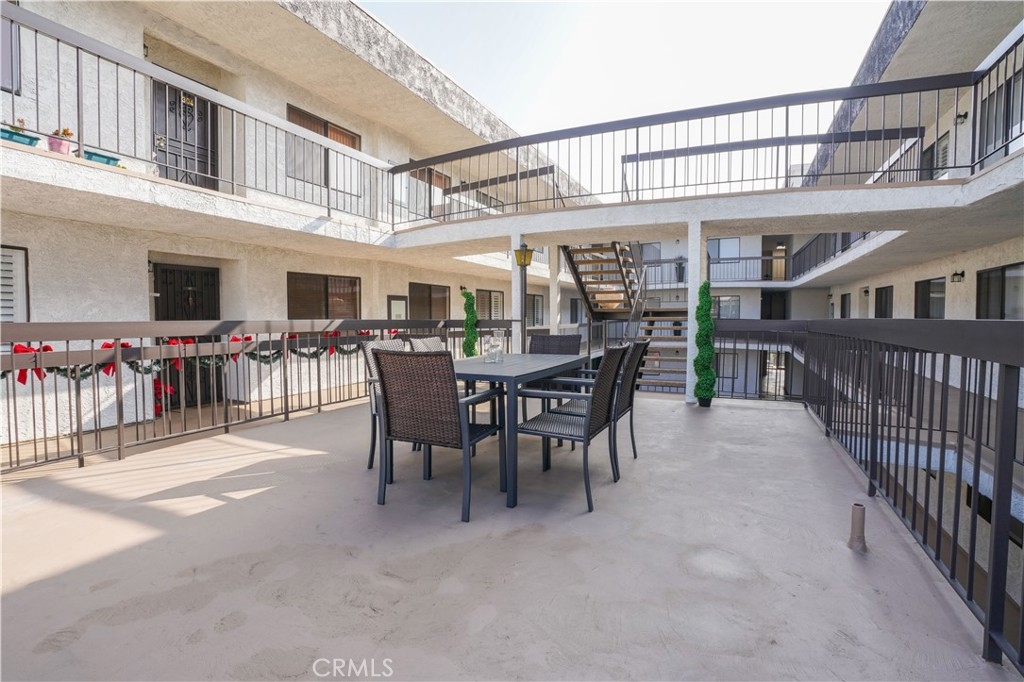 Updated Condo located in prime location Burbank Hills is nestled in the highly desirable Elmwood Villas, this beautifully updated 2-bedroom, 1¾-bath condo offers 1,248 sq. ft. of open living space. The home has been freshly painted in a soft Swiss Coffee tone, complementing the luxury vinyl flooring and dramatic designer finishes throughout. The spacious living room features natural light, recessed lighting, and a stunning floor-to-ceiling gas fireplace. The chef-friendly kitchen boasts custom cabinets, tile counters with full backsplash, and built-in appliances, while the adjacent formal dining room offers direct patio access. The grand suite includes mirrored closets, a lighted ceiling fan, and an updated bathroom. The unit also has a convenient in-unit laundry area with a new washer and dryer, plus a new HVAC system for year-round comfort. Additional features include 2 dedicated side-by-side subterranean parking spaces, extra storage, and access to the community's large center courtyard. The complex has recently undergone a major renovation, including a new roof, wrought-iron railings, and a freshly painted exterior. Located close to top schools, theaters, restaurants, and shopping, with easy access to the 5 freeway.