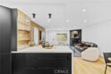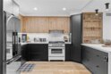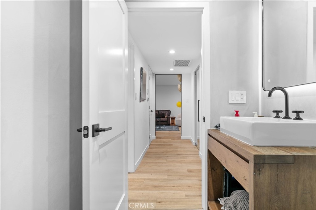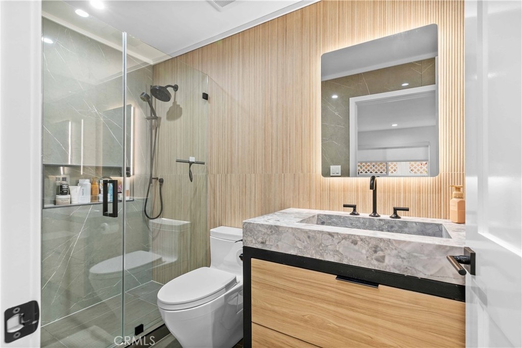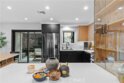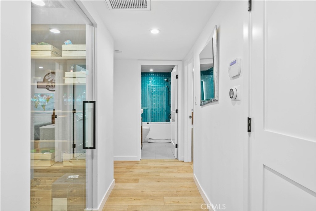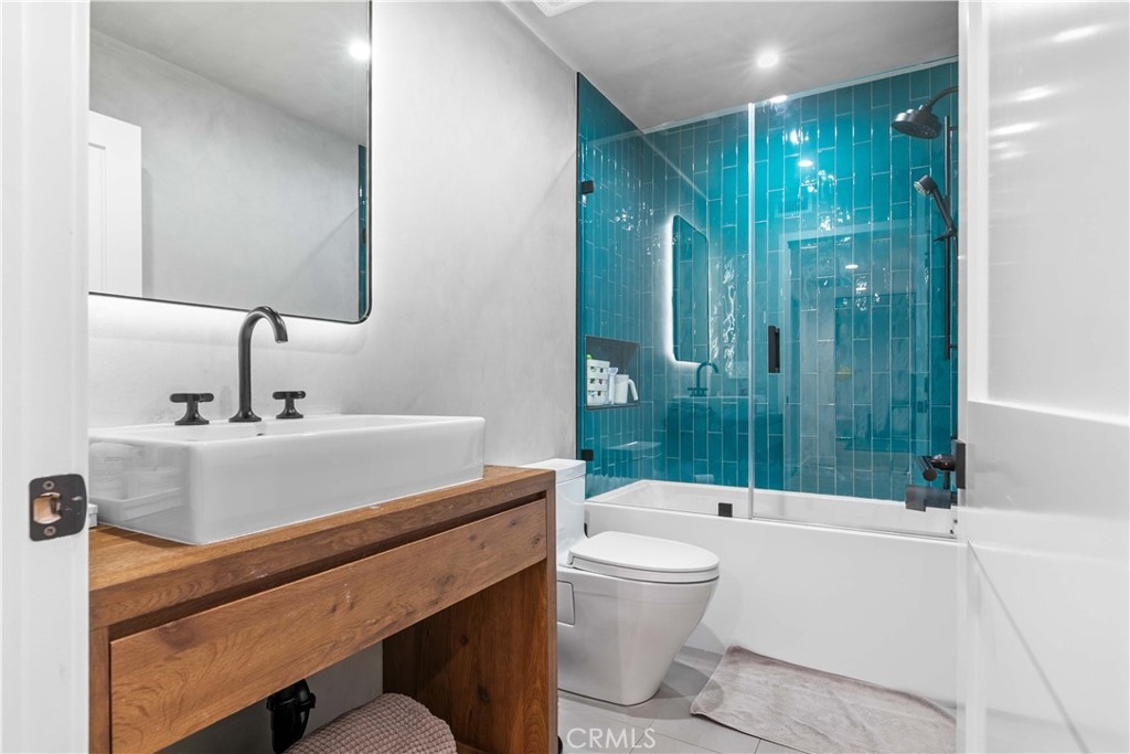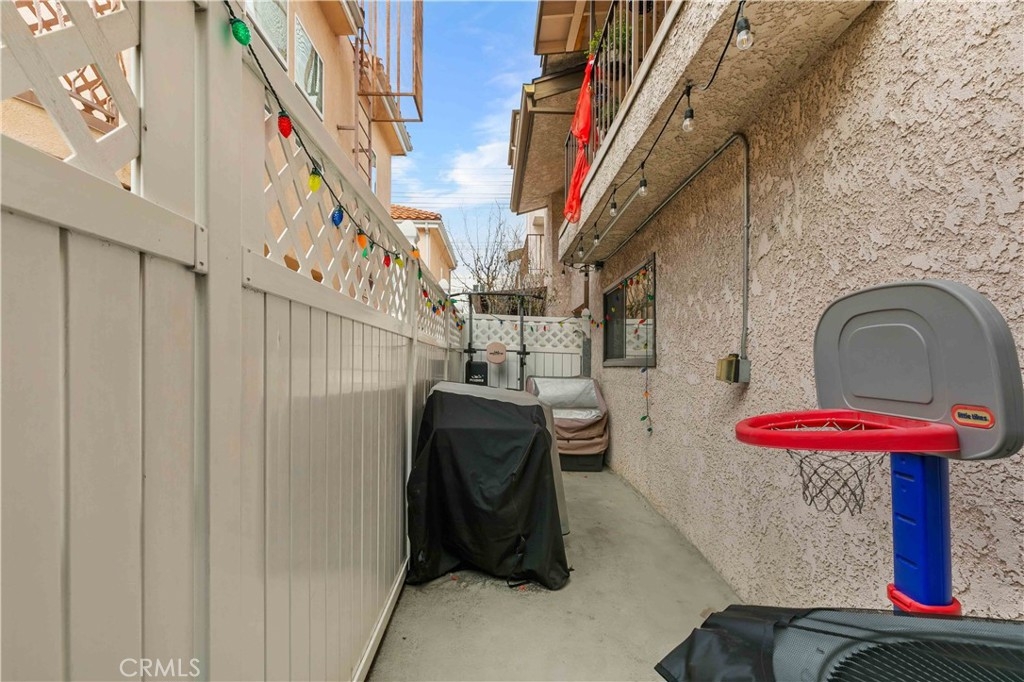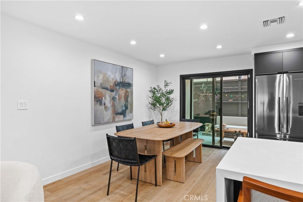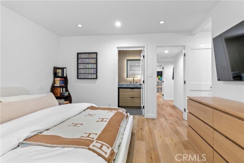 Discover elevated Burbank living in this fully remodeled, single-level condo offering 1,231 sq ft of curated design and effortless comfort. Every detail has been thoughtfully reimagined with premium finishes and a clean, modern aesthetic. An open floor plan anchors the home, highlighted by smooth-coat walls + ceilings, updated windows, wide-plank flooring, and recessed lighting. The living room centers around a striking black brick fireplace and custom wood-slat media wall (TVs included). Large sliding doors blur the line between indoors and out, opening to an oversized covered patio—your new lounge, dining deck, and year-round hangout. The patio/side yard adds extra space for grilling, dinning and storage. The grilling station and dedicated lighting will be included. The kitchen delivers style and function with a full Fisher & Paykel appliance suite (gas range/oven, French-door refrigerator, dishwasher), matte black cabinetry, warm wood uppers, quartz surfaces, under-cabinet lighting, a glass-front display cabinet, and peninsula seating. Both bedrooms feel calm and intentional, offering generous closets, custom shelving, and a built-in vanity desk. One bathroom features a Restoration Hardware sink, while both are finished with designer tile, Brizo fixtures, and modern detailing. The dedicated laundry room adds convenience with built-ins and a glass-door entry. Smart upgrades include an alarm system, central HVAC, and secured garage parking with two assigned spaces + dedicated Tesla/EV charging. Private storage cabinets are located above the parking. Situated in a convenient Burbank location near shops, dining, studios, and local amenities, this turnkey residence pairs sharp design with everyday ease. A rare blend of function, style, and comfort.