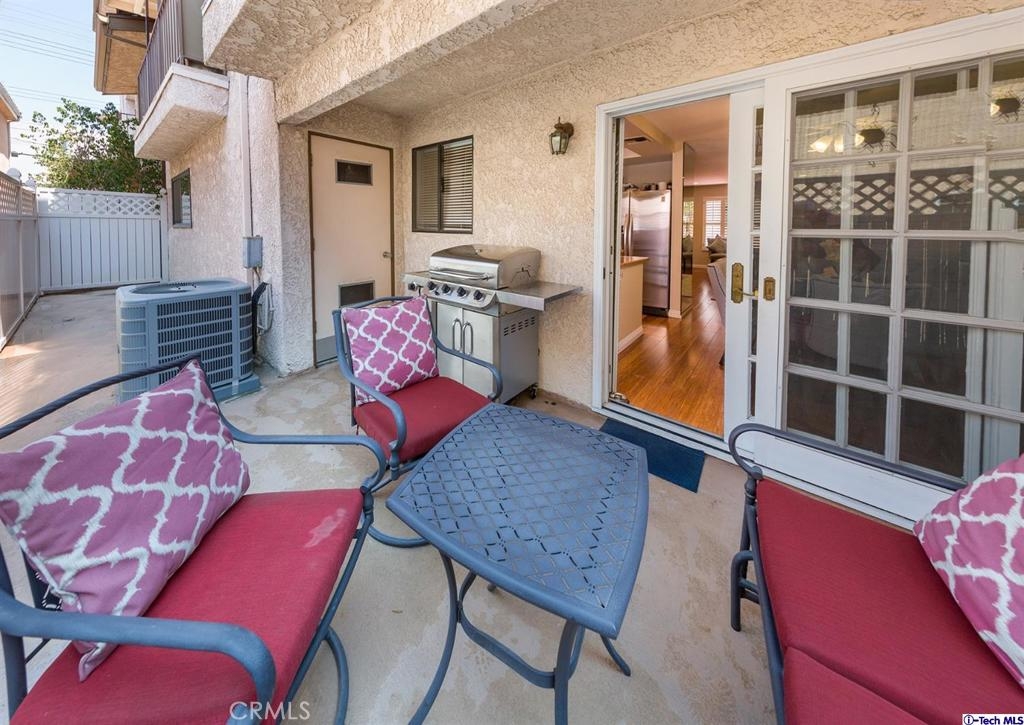 Beautiful condo in the heart of Downtown Burbank. This unit features 2 Bedrooms, 2 Bathrooms, 1,231 sq. ft. on one story and low HOA. Large and Bright Living/Dining rooms, Gas fireplace, Master Suite, Kitchen with stainless steel appliances, hardwood flooring, recessed lighting, both bedrooms are large with wall to wall closet, recessed lighting, ex-large patio great for entertaining, Newer HVAC, 2 side by side parking with 4 storage areas and close proximity to shopping, dining and movies.