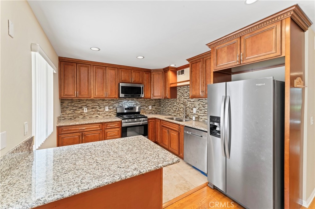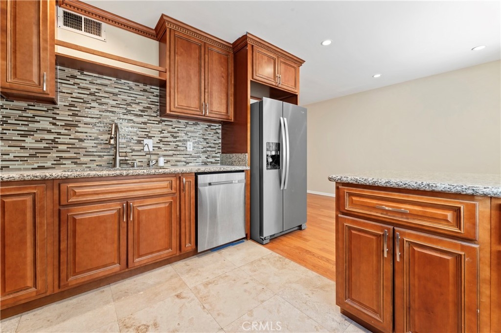 Welcome to this beautiful 2-bedroom, 3-bathroom townhome with a versatile den/office space, located in the highly desirable Cabrini Villas community. This home is move-in ready and features a remodeled gourmet kitchen with stainless steel appliances, upgraded cabinets, granite counters and plenty of storage space. Enjoy cozy evenings by the living room fireplace or unwind on the private patio just off the living area. Upstairs you'll find 2 spacious bedrooms with plenty of closet space and a versatile den/office downstairs. The property boasts stunning hardwood floors throughout, recessed lighting, a convenient laundry area, and attached 2-car garage. Cabrini Villas offers an array of amenities including 24-hour security, pools, tennis courts, pickleball courts, and a relaxing spa.The HOA fees include sewer, water, cable, high-speed internet, and exterior maintenance, making it a worry-free homeownership experience. With its prime location and abundance of amenities, this townhome is perfect for anyone looking for comfort, convenience, and community. Don't miss out on this wonderful property!
