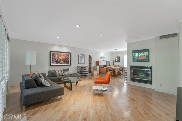 Set high in the Cabrini Villas, this beautifully updated 4-bedroom, 2.5-bath townhouse combines hillside privacy with modern comfort and incredible community amenities. The main level welcomes you with beautiful hardwood floors and a large open living and dining room area, perfect for hosting gatherings or simply enjoying the flow of everyday life. A cozy fireplace anchors the living space, while sliding doors open to a spacious private patio —an ideal spot for entertaining, morning coffee, or relaxing at sunset. The updated kitchen features stainless steel appliances, modern cabinetry, and stylish countertops, making it as functional as it is inviting. Upstairs, you’ll find four generous bedrooms, including a primary suite with a large walk-in closet and its own en-suite bathroom. A second full bathroom upstairs conveniently serves the additional bedrooms, ensuring comfort for family and guests. The home also includes the convenience of an attached two-car garage with a versatile bonus space that can flex as a home office, gym or storage room. Life at Cabrini Villas means access to resort-style amenities: seven pools, four spas, saunas, six tennis courts, basketball and volleyball courts, playgrounds, and lush landscaped grounds. The HOA provides added ease by covering water, sewer, internet, cable, and landscaping. All this just minutes from major freeways, Burbank’s studios, Downtown Burbank, shopping, and dining. A rare opportunity to enjoy hillside living with both space and community at your doorstep.